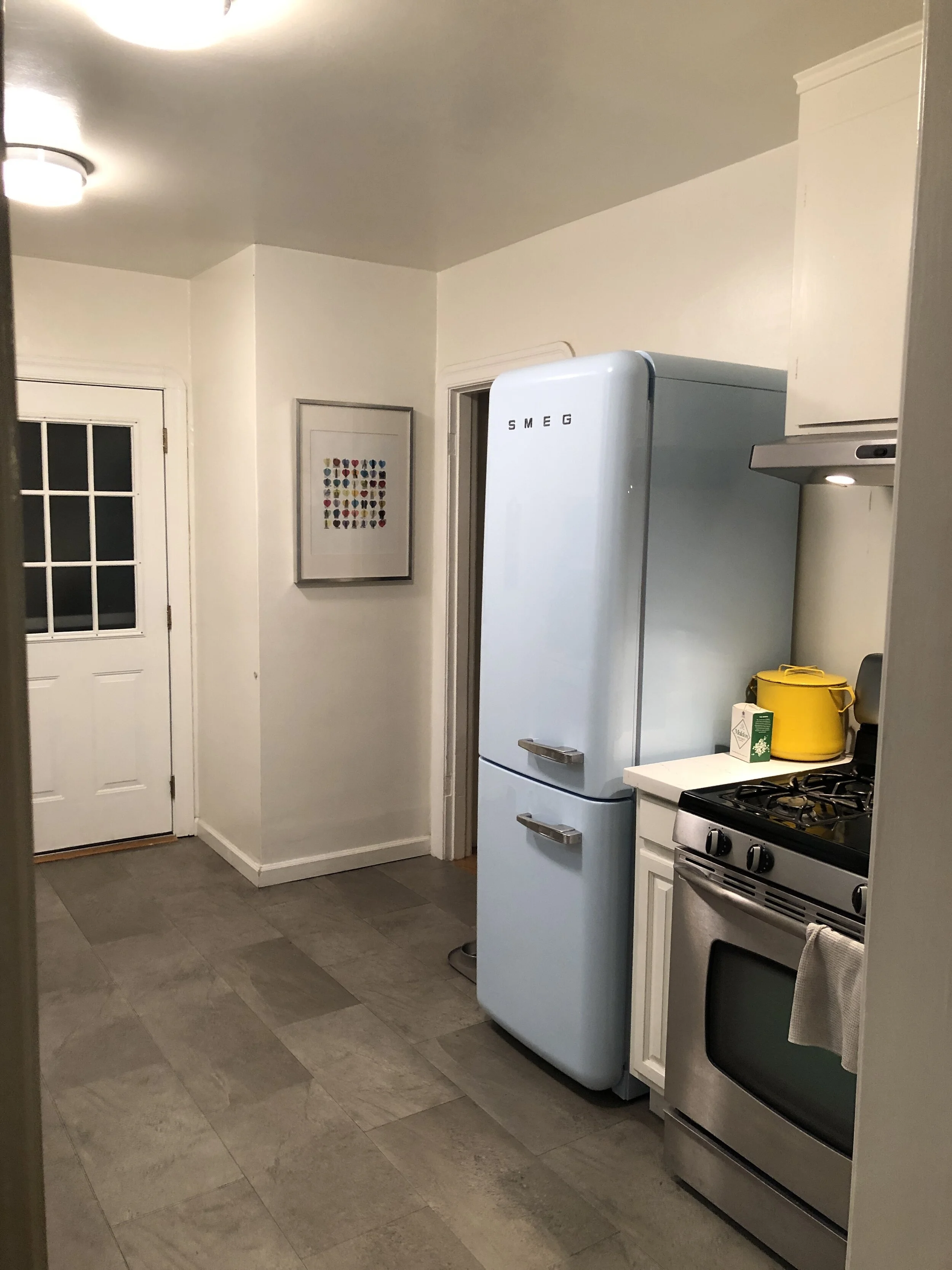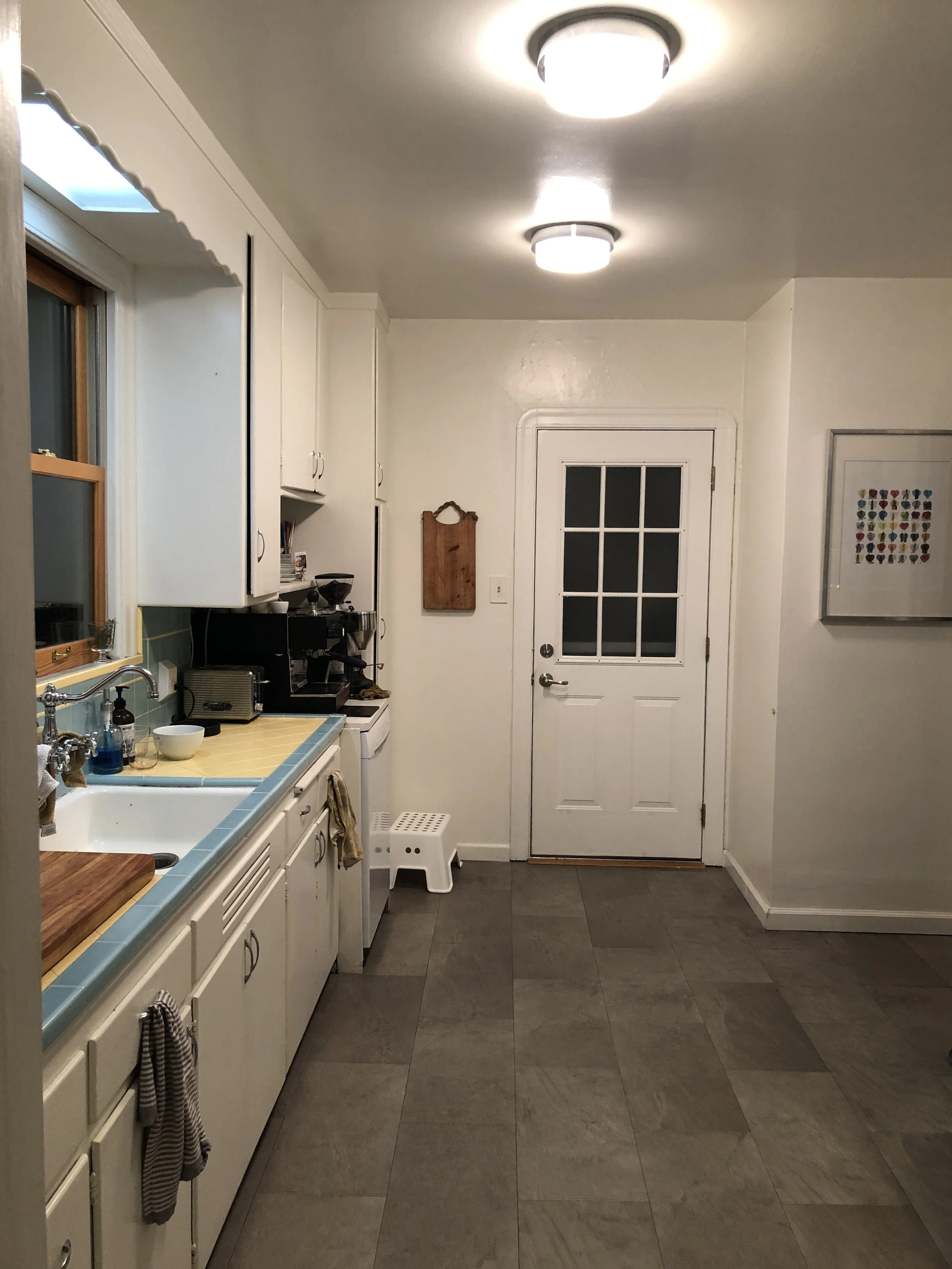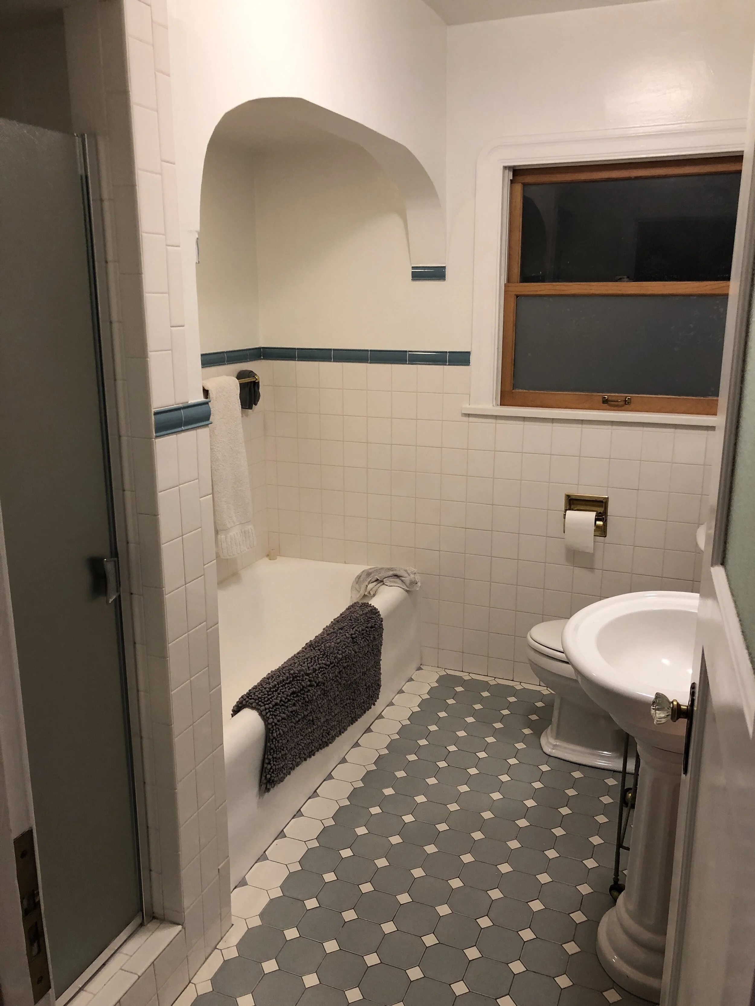 A bathroom and kitchen remodel for Clients who wanted to maximize the feel of their compact space. We opened up with connection between the dining room and the kitchen with a widened, arched entry and expanded the rear deck. Pocket sliding glass doors disappear into the walls of the kitchen and create an expansive sense of space from the kitchen out to the new deck. Views from the Dining Room straight through to the outdoors bring in light and breaths into the house an airiness that was lacking before.